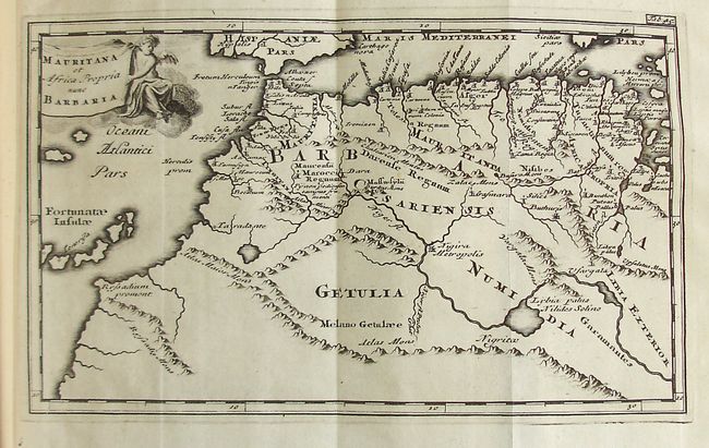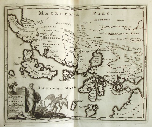 This is one of the later issues of this much respected and highly popular early geography that was first published in 1624. It contains 42 copper engraved maps: 28 double page and 14 folding, single page copperplate engraved maps. Five tables, a bold red and black title page with a small vignette and a beautifully engraved frontis are also included. This difficult to find example includes the embellished double-hemisphere world map and America, which shows California as an island. Sixteen pages of preliminary notes and dedications, a table of contents, 565 pages of text, and an extensive index complete this exhaustive work. Phillip Cluver founded the discipline of historical geography, and his posthumously-published six volume work remained the standard for more than a century. 8 vo. Complete. Original vellum hardbound with gilt lettering and decorative touches on front and back. Raised bands and manuscript title on spine. A terrific example of this desirable work.