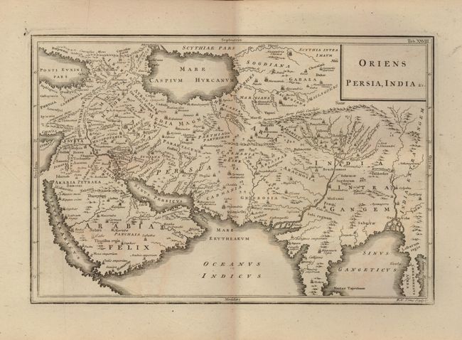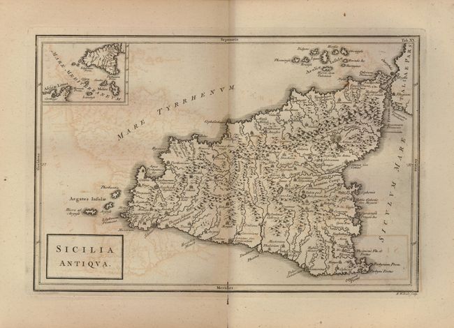 The second edition of this highly regarded geography containing thirty-three double-page maps. The book focuses on the three divisions of the Ancient World -Europe, Asia and Africa. The attractive, boldly engraved maps are in Latin, and use two different typestyles, Italic and Roman, to distinguish between ancient and modern place names. They show excellent detail with topography, towns, churches, mosques, and more. The map, Sicilia Antiqua shows an erupting Mt. Aetna. Insularum Britannicarum Facies Antiqua includes an inset of Thule, and a handsome map of the Nile Delta, Aegypti Delta et Nili Ostia locates Alexandria, Memphis and the pyramids. The text has been translated from French, and describes the names and boundaries of the countries and their provinces or other divisions. 8vo. 105 pages plus a 19 page index. Published by Robert Horsfield. Complete. Hardbound in original leather with gilt title and raised bands on spine.