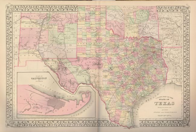 Complete atlas with 147 maps and plans on 72 sheets, most surrounded by a grapevine border and dated 1882. Eighty-three of the sheets are related to the United States with individual states, regions and city plans. This example includes the Railroad Map of the United States… and a charming Map of the Original Thirteen Colonies that has engraved examples of the "first money coined by the United States." A spectacular double-page plan of Chicago includes a street index in the lower margin. Other maps of interest include County and Township Map of Arizona and New Mexico and County and Township Map of Dakota. Small folio. Hardbound in original brown cloth with quarter calf spine and tips and gilt title on front.