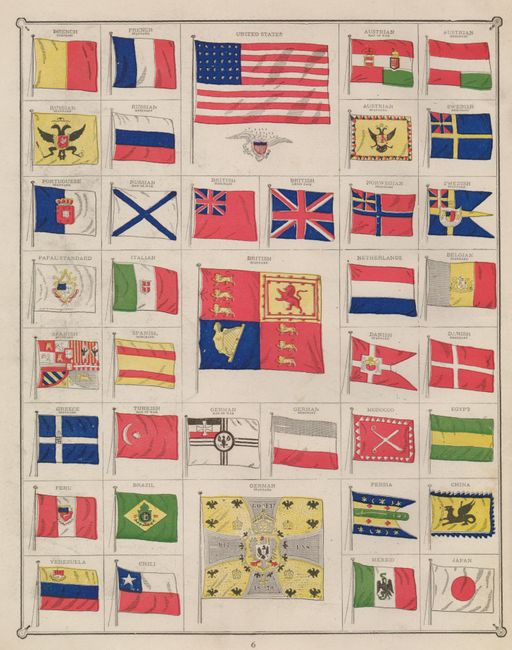 A handsome example of this atlas that features 70 tipped-in, wax engraved maps with fancy borders, 16 of which are double-page. All states and territories are represented with 47 maps of U.S. interest. Other charts include Flags of the World, five thematic charts, types of the Races of Men, several pages of portraits, and a charming improvements of the century page with numerous engravings showing the plow, sewing machine, electric light, wheat thrashing machine, a locomotive, and more. Copyright 1883, but dated 1884 on the cover. Title page, contents, list of the population of cities, index, 198 pp. Hardbound in original brown cloth, with embossed and gilt titling on front.