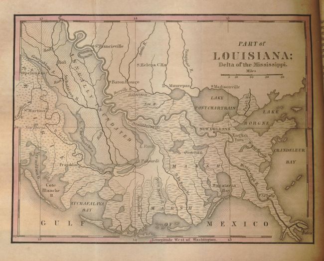 This charming book contains eleven nicely engraved maps that focus on the United States and an attractive map of the world that has a red line showing the northern limits of grain cultivation and marks the boundary between the horse and rein deer. The small (6.4 x 4.8") folding maps all show good detail with roads, topography, towns, Indian villages and reservation lands. Volume I only, 330 pages with 12 maps (of the 14 included in both volumes). This volume contains both the interesting Falls of Niagara and Adjacent Country and Part of Louisiana; Delta of the Mississippi maps. Hardbound in original brown leather with gilt title on spine. Published in Philadelphia by H.S. Tanner. These maps also appeared in Tanner's A New Pocket Atlas Of The United States also published 1828.