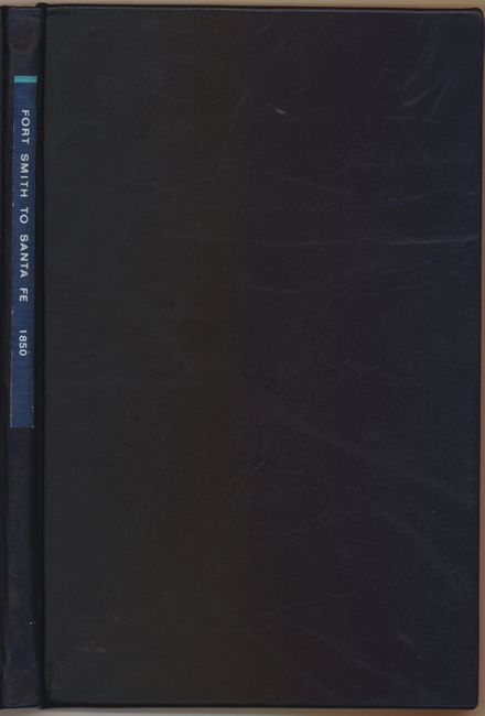 This historical and finely detailed set of maps covers the route of the expedition on a scale of 10 miles to the inch. The four sheets display the entire route, which initially crossed present-day Oklahoma, continued along the Canadian River to the llano Estacado in Texas' panhandle and finally into eastern New Mexico. Filled with details encountered along the way, it includes forts, rivers and creeks, topography, and many notes on wildlife, geological, emigrant roads, Indian tribes and villages, availability of water and wood, and much more. Every camp site is located and numbered. A table of distances appears on each map. One curious note just east of Albuquerque states that "Fish with legs found in this pond." This expedition represents the first detailed mapping of the area, and Simpson found the route to be "superior" and practicable for a railroad. The survey was made with a chain and compass checked by astronomical observations made with a sextant and chronometer. Simpson credits the surveys of the Canadian River and of New Mexico, made in 1845 - 46 & 47, by Lieut. T. Abert of the Topographical Engineers in the preparation of his maps. The maps were drawn by Lt. Simpson with the assistance of Mr. E.M. Kern and Mr. Champlin. Wheat notes the original drawings for these four maps are preserved in the National Archives. See Wheat Volume III for further details on the importance and accomplishments of Simpson' expedition. The maps fold into the original report "Report from the Secretary of War… Report and Map of the Route from Fort Smith, Arkansas, to Santa Fe, New Mexico, Made by Lieutenant Simpson." Bound in blue leather with 25-page report.
