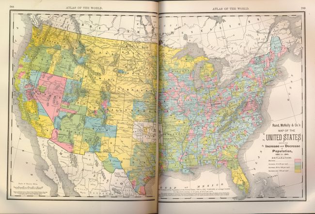 This large and very comprehensive atlas is comprised of 82 single-page and 42 double-page maps. Each map has political and population statistics in the margins, and many feature insets and important facts. This atlas is the same as the Indexed Atlas, with single-page maps measuring 9.2 x 12.5". It has 17 U.S. city plans including New Orleans, San Francisco and Washington, D.C. Also included are numerous charts, tables, diagrams, descriptions of all parts of the world, hundreds of photos and engravings, world history, etc. 336 pages. Complete. Folio. Hardbound in original green cloth with embossed gilt and black title on front and black title on spine.