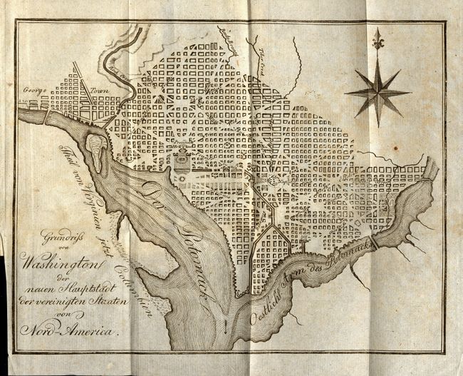 This rare book, the fourth title in Zimmerman's annual compilations, is devoted entirely to America and features the first German description of California as it was under Spanish rule. This edition contains 10 handsome copperplate engravings and maps derived from Vancouver's A Voyage of Discovery to the North Pacific Ocean, and Jakob Begert's Nachrichten von der Amerikanischen Halbinsel Californien. The two folding maps include Karte von Nord Amerika, which actually covers the middle of the continent, and Grundrifs von Washington der Neuen Hauptstadt der Vereinigten Staaten von Nord America, and an early plan of Washington DC. There are two single-page portraits; a Seminole Indian chief (Mico Chlucco) and Sir Hans Sloane, the founder of the British Museum. The remaining six folding plates show the mission at Monterey, California natives, California and Virginian landscapes, and a variety of flora and fauna. Complete, 32mo, 283 pages. Original hardbound marbled boards with gilt stamped, leather spine.