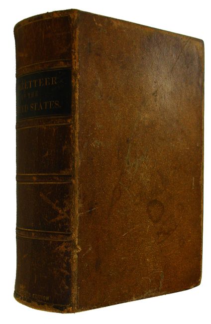 A massive collection of statistical information reflecting the tremendous growth of the United States in the mid-19th century. The authors, Thomas Baldwin & Joseph Thomas, state in the preface that the territory of the country expanded by more than 800,000 square miles, bringing the total amount of land that comprises the U.S. to over 3,000,000 square miles, "nearly equaling the whole of continental Europe." The population statistics are based on the census of 1850, and were revised in 1853, due to this growth. Tipped into the front is a large folding map by W. Williams, A New Map of the United States, Upon Which Are Delineated its Vast Works of Internal Communication, Routes Across the Continent &c. Showing Also Canada and the Island of Cuba 1854 (28.8" x 24.5"). This is a highly detailed and beautifully engraved map that has vivid hand color and features four insets: Map of the Niagara River and Falls, City & Harbor of Havana, Map of the Island of Cuba and a nicely detailed Map of California, Oregon, New Mexico Utah &c. that is the same as Williams' map noted in Wheat's Mapping the Trans-Mississippi West #818. The main map shows the country as far west as the Texas panhandle, and locates forts, railroads, trade routes and the tracks of several explorers. Nebraska is shown in possession of the Indian Territory down to the Red River and Minnesota and the Northwest Territory share the land that is now North and South Dakota. 1364 pages. Thick 8vo. Hardbound in original brown leather with gilt title over a black band on spine, and marbled foredges.