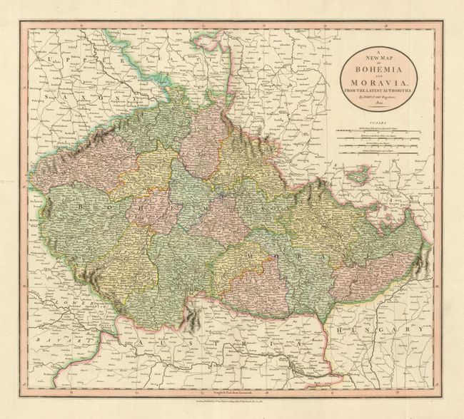 This is a very handsome and detailed map of these historic regions in the present-day Czech Republic showing much information of the towns, cities and topography.