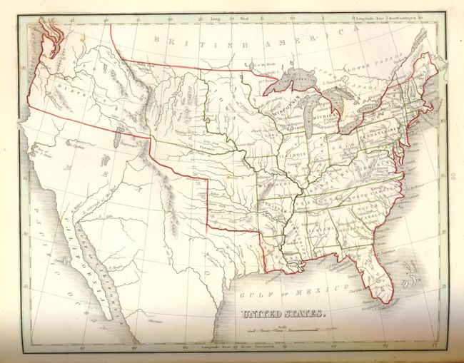 This edition contains an updated version of the Bradford's Texas map, numbered 66.A., with counties shown instead of land grants, Austin as capitol, and absence of "Mustang Wild Horse Desert" in south Texas. On this Republic of Texas map, the southwestern boundary is still delineated by the Nueces River but the map shows San Patricio County extending south from the Nueces to below the Rio Grande, thus an exertion of its claim to include lands north of the Rio Grande as its border with Mexico. With the accompanying Republic of Texas text page. Texas is also shown and labeled as an independent nation on the map of North America, and implicitly as such on the maps of Mexico, Guatemala and the West Indies (with Austin shown as capitol); the map of the United States; and Western Hemisphere.