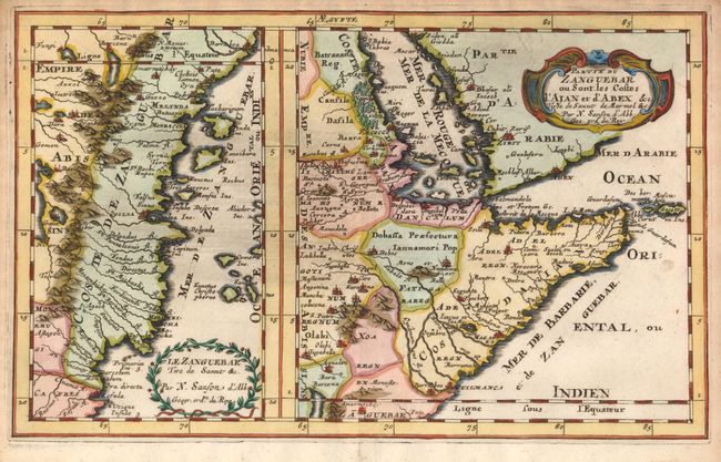 This attractive map, in two parts, covers the east coast of Africa from Mozambique to the Red Sea showing the prosperous trading ports. Each map has a decorative title cartouche.