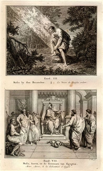 Nice lot of copper engraved illustrations from the Old Testament. Illustrations include several from the story of Moses. There are two scenes (7 x 5.3") on each sheet. They are from a Dutch biblical history by Ysbrand van Hamelsveld.