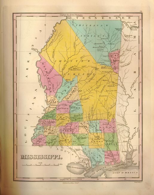 This is an important and complete American published atlas that appeared in several editions published between 1824-34; this atlas is dated 1833 on the title page. Each finely engraved copperplate map is in original, full hand color. The North America map shows the United States ending at today's boundary, with New Caledonia above and Russian Possessions above and extending to the Arctic Circle. The map of Mexico includes what will become the independent Republic of Texas in 1836, here labeled "Coahuala and Texas." Also featured is the uncommon, Map of the West Coast of Africa from Sierra Leone to Cape Palmas, including the colony of Liberia which has an inset of Monrovia. The two thematic charts are "Comparative Heights of the Principal Mountains &c. in the World" and the "Comparative Length of Rivers." Bound in original marbled boards with red morocco leather and original paper title label on front cover. Folio. Title page, table of contents, three tables; statistical, length of rivers and height of mountains and 62 maps engraved by Young & Delleker, four of which are double page. With Finley's original paper label on the inside front cover listing other maps for sale with price. This is a good example of an important and increasingly difficult to find atlas.