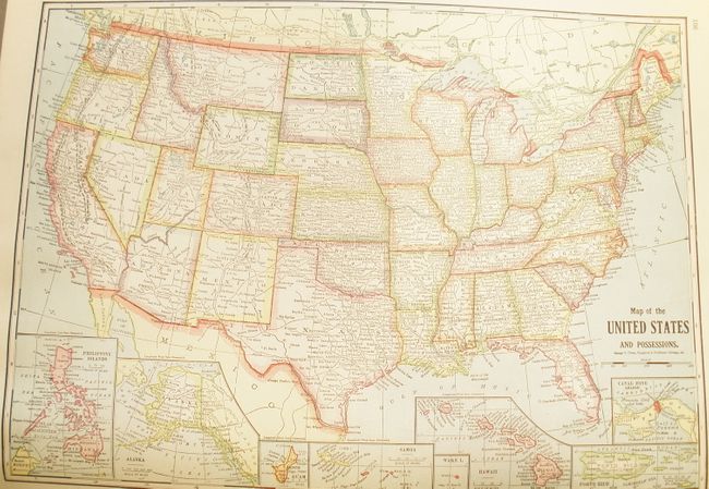 This unusual, early 19th century atlas focuses on New York state in addition to the normal U.S. state and world atlas maps. The first 80 pages are a description of New York with hundreds of photographs including a full-page plate of the Brooklyn Navy Yard plus excellent images of the Catskill and Adirondack Mountains, major buildings and cityscapes. There are eight maps of New York, including plans of New York City and Buffalo. There is also a copy of the Declaration of Independence and the Constitution of the United States. Folio, 304 pages. Hardbound in original blue buckram.