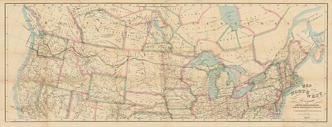 The route of the Northern Pacific Railway from Michigan's Upper Peninsula to Portland, Seattle and Olympia is detailed on this map. The map stretches from New England to the Pacific, south to include San Francisco and Denver, and into Canada showing most of British Columbia and all of Alberta, Saskatchewan, Winnipeg, Moose, Bittibee and most of James Bay. The map is remarkably detailed with all rails throughout the area delineated as well as the watershed, wagon roads and many towns named. Iso-thermal lines give the mean annual temperature in 10°F increments. With many interesting notations including the location of coal in several places, the winter home of buffaloe, and locates various land types including pasture, and timber. One notation suggest northeastern Montana is an area of "Wide & fertile Valley well timbered." Lithography by the N.Y. Lithographic, Engraving and Printing Co. of Julius Bien. The map is hand colored in outline, a rarity for the Julius Bien company.