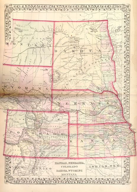 This is a nice example of Mitchell's atlas that is complete with "Sixty-Three Quarto Maps, Forming a Series of One Hundred Maps and Plans, together with Valuable Statistical Tables." Each lithographed map is well hand colored and surrounded by Mitchell's signature floral border. At least thirty-three of the sheets are related to the United States with more than 45 individual states, regions and city plans. There are two world maps, one hemispheric and the other on Mercator's Projection. The very fine map of Texas features fine hand coloring and dark impression with a large inset "Galveston Bay, and Vicinity." This is Mitchell's first edition to show the Territory of Arizona with the borders known today, but with only four counties plus the nebulous political region of Pahute in the northwest corner. With the uncommon double page map of California (split in half). Small folio, publisher's quarter morocco with embossing and gilt title on front cover. Title page, List of Maps, maps and plans, List of Post Offices in the United States, Table of Population, Governments. &C., Table of Distances, Mountains of the World, and Rivers of the World. All pages including endpapers are present and maps are correctly collated. A nice example of this historical and desirable atlas that is filled with decorative maps and plans.