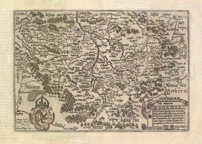 A bold map centered on the Vltava (Molda) River and densely engraved to depict the forested hills and populated valleys of the region. The map was drawn by Johann Bussemacher and engraved by Henricus Nagel. German text on verso.