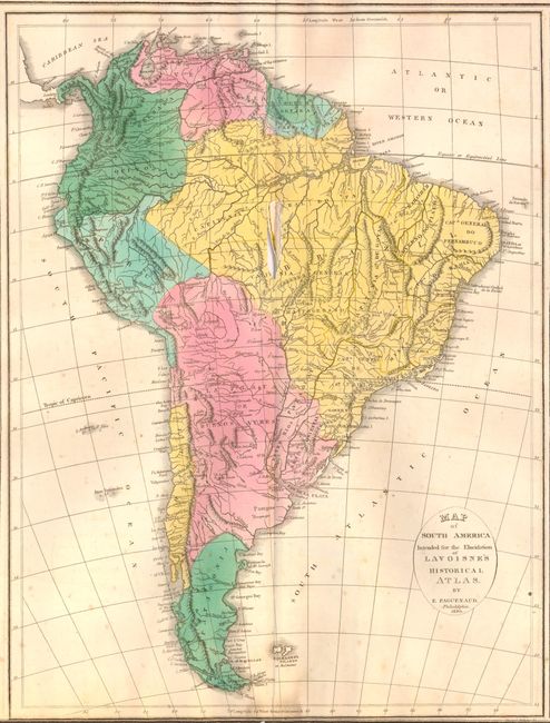 This is Lavoisne's second American edition folio atlas "carefully revised and corrected" by C. Gros and J. Aspin. Published by M. Carey and Sons, and printed by T.H. Palmer "on the Ruthven Press, and on J. & T. Gilpin's Machine Paper." The atlas is complete and contains 28 double-page maps, plus scores of detailed and colorful tables, chronological and historical, on 71 plates. The maps are listed below.