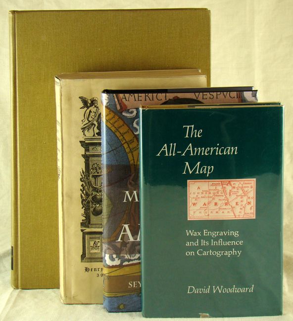 C) The All-American Map: Wax Engraving and its Influence on Cartography by David Woodward, published 1977, black & white, (6 x 9"). The book explores the impact wax engraving had on mapmaking during the mid-19th to mid-20th centuries in the United States. 168 pp. Hardbound in tan cloth boards with green paper covers and dust jacket. (A)