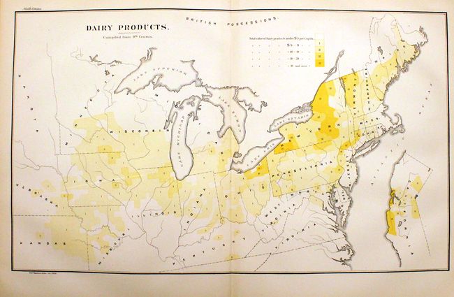 The map is accompanied by the original 843 pp. book on the Ninth Census report, Volume III by Frances A. Walker, which is filled with statistics and a number of thematic maps focused on manufacturing and agriculture. In his report Walker used the relatively new field of thematic cartography to illustrate certain population statistics from the census by means of varying intensity of color on maps - a novel technique at the time. Hardbound, half-calf with marbled boards.