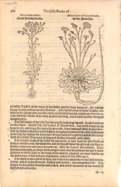 C - H) [6 sheets from] The Herbal or Generall Historie of Plants, by John Gerarde, published 1597-1633, black & white (7 x 11"). Condition: Overall lightly toned, with two sheets that have numerous small worm holes, primarily confined to blank margins. (B+)