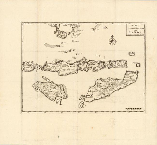 A fascinating map of the islands in the southwestern part of the Banda Sea including Sumba, Flores and Timor. Valentyn was an prominent historian of the Dutch East India Company (VOC) who is best known for Oud en Nieuw Oost Indien, which was published by Joannes van Braam and Gerard onder de Linden. He twice traveled to the East Indies and served as Calvinist minister to Ambon between 1686 and 1694. In preparing this monumental work, he was given privileged access to the previously secret archives of the VOC, containing transcripts and copies of important earlier Dutch voyages.