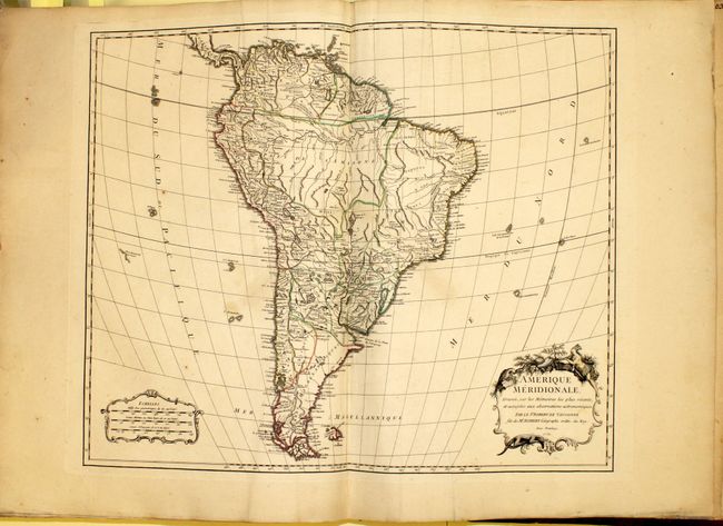 A nice example of Gilles and Didier Robert de Vaugondy's great atlas, with 97 (of 108) double-page maps. Gilles' and Didier's goal with the Atlas Universel was to create a work that was "commode, complet, uniforme, et suivi" (easy to handle, complete, uniform and consistent). Their desire for the atlas to be uniform and consistent, both in style and scale, was a concept introduced by one of their relatives, Nicolas Sanson. Atlas Universel was printed and published by Antoine Boudet, who also owned the plates. Rather than risk capital on such a big endeavor, Boudet decided to offer the atlas by subscription. The atlas includes a list of the subscribers, listed in the chronological order in which they were enrolled. Most of the subscribers were booksellers ordering multiple copies, although a number of geographers, royalty, lawyers, and government workers also subscribed. Subscriptions cost between 96-120 livres.