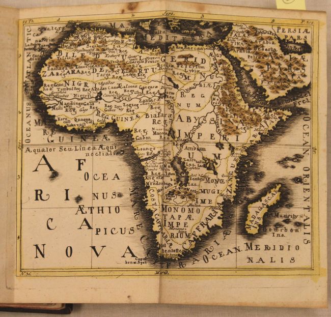 This rare early geography book by Franz Wagner pertains to both ancient and modern geography. It is divided into two sections containing 15 ancient and 21 (of 22) modern maps including modern maps of America, Asia, Africa and Europe. The remaining maps are focused on regions of Europe, and many of the maps are hand colored. Cartographically, the map of America features a large, blank northwestern coast labeled parts unknown with a spurious lake at center. There is no inland detail with the exception of Santa Fe being located. The map of Africa shows two lakes (Zaire and Zaflan) in central Africa as the source of the Nile River and the Mountains of the Moon are shown just to their south. Published by Leopold Joseph Hoedl in Vienna. 12mo, 337 pp. Hardbound in full brown leather with an embossed raised spine.