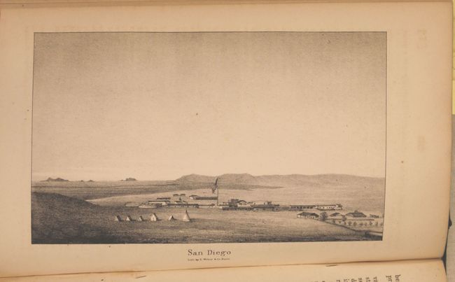 The report summarizes the activity of the U.S. Army of the West after the capture of New Mexico with important early views of the region. It is illustrated with 25 lithographed views, three battle maps, and 14 botanical plates. The view of San Diego is present. The battle plans are: Sketch of the Actions fought at San Pasqual in Upper California…; Sketch of the Passage of the Rio San Gabriel...; and Sketch of the Battle of Los Angeles Upper California. Fought between the Americans and Mexicans Jany. 9th, 1847. The report also includes an important Mexican-American War period map entitled Military Reconnaissance of the Arkansas, Rio del Norte and Rio Gila (64 x 30") that shows the route of Col. Kearny and his Army of the West as they traveled from Ft. Leavenworth to Los Angeles via Santa Fe and San Diego. Wheat states that the map was an important milestone in the cartographic development and accurate determination of the geography of the West. A large map printed on three sheets, joined as issued.
