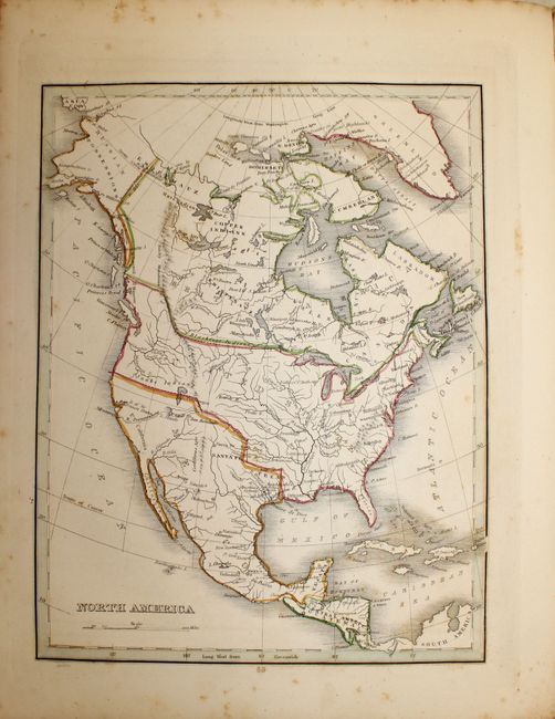 This is the first edition of Bradford’s folio atlas, which is a revised edition of his small format atlas. This is the first American atlas to contain a separate map of Texas, which is based upon Stephen F. Austin’s important map. The map is entitled Texas, and shows land grants instead of counties. There are 14 land grants including Beales Grant, Austin & Williams Grant, and DeWitts Grant to name a few. Austins Colony is also named, but the city of Austin does not appear. The Nueces River is designated as the southwestern boundary of Texas with the Mustang Wild Horse Desert spanning the region between the Nueces and Rio Grande rivers. The map is marked page 64.A., and is accompanied by two pages of text marked 64.B and 64.C. describing the physical features, and also points out that Texas is "at present engaged in an arduous struggle for independence." Later editions only include one page of descriptive text.