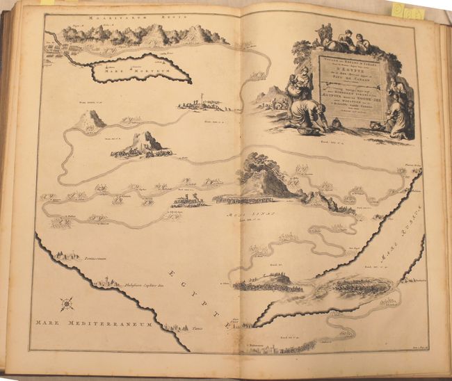 Voyage des Enfans d'Israel dans le Desert Depuis leur Sortie d'Egypte par la Mer Rouge. This interesting pictorial map focuses on the Exodus of the Children of Israel from Egypt to the Promised Land and their wandering in the desert. Mount Sinai is prominent at the center of the map. At top left are the Jordan River and the Mare Mortuum (Dead Sea) and at bottom right is a graphic scene of the pursuing Egyptians being swallowed in the Red Sea following the successful escape of the Hebrews. Numerous place names and biblical references fill the map which is decorated with a large title cartouche depicting women gathering the Manna.