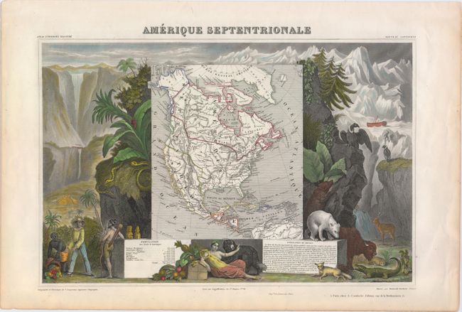 Victor Levasseur's "Atlas National Illustre" and "Atlas Universel Illustre" are among the last decorative atlases published. The maps are all lavishly illustrated with scenes of the countryside, products and activities indigenous to the region.