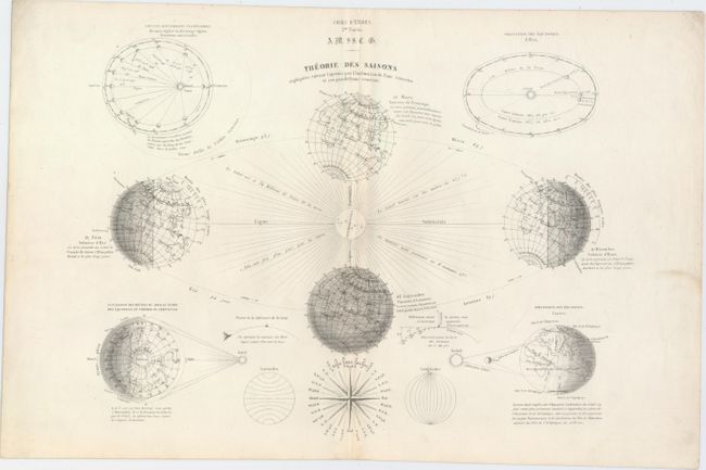 C. Theorie des Saisons Expliquees Suivant Copernic par l'Inclinaison de l'Axe Terrestre et Son Parallelisme Constant, by Anon., circa 1870, black & white (14.7 x 10.9"). This is an uncolored engraving from the same series as the one above, showing the effect of the seasons and the movement of the sun. Condition: There are two minute worm holes around the centerfold that are only visible when held up to light and some minor soiling along the sheet's edges, far from the image. (A)