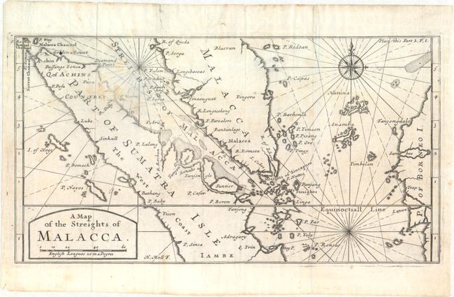 This map is centered approximately on Singapore and covers a portion of southeast Asia including Malaysia and Indonesia (Sumatra and Borneo). There is good detail of the coastline and numerous smaller islands located throughout. North is oriented to the right with the "equinoctiall line" passing through Sumatra.