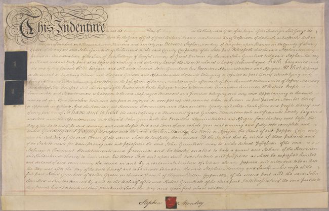 The top of the indenture is cut in a jagged ("toothed") line, as was the common practice with indentures. The legal contract was duplicated on a single sheet, and then the copies were separated by a jagged edge, so that the two pieces could be fit together again to verify authenticity.