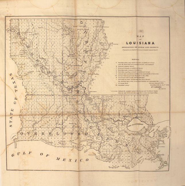 Maps are generally good with light toning, scattered foxing, and several faint damp stains present in the first eight maps (state surveys). Several of the maps have short binding tears, with the map of California having a 5” binding tear at left. The map of the Clinton River, Michigan has a small 0.5” chip at lower left. Covers are lightly rubbed with stains.