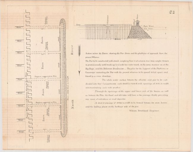 C. Plan & Location of the Great Pier for the North River Also the Soundings of that River, and Delineation Showing the Present State of the Shore from the Battery to 42nd Street, by Edward Ewen, (33.9 x 4.5").