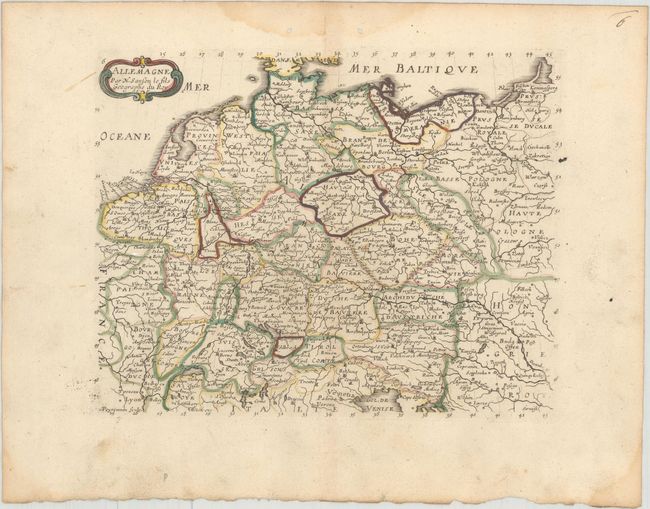 This copper engraved map covers the German Empire, which covered the heart of Europe at the time and stretched from Belgium through Poland and from the Baltic Sea to the Gulf of Venice. The map shows the political divisions and major cities and towns. It is adorned with a strapwork title cartouche.