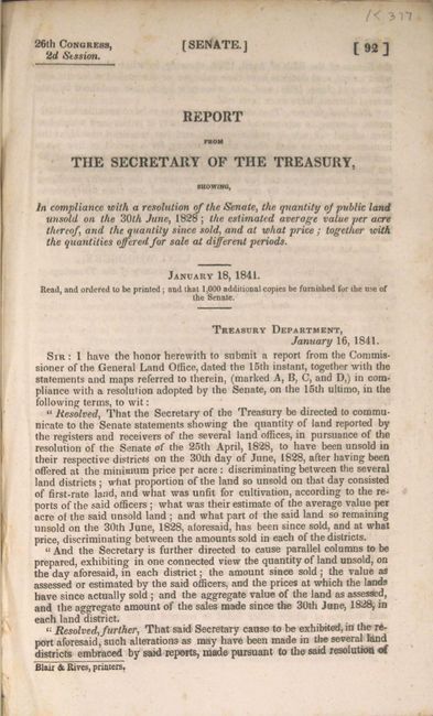Publication: Sen. Doc. 92, 26th Cong., 2nd Sess.