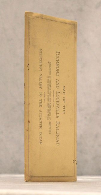 This large and very detailed map delineates the major railroad routes in Kentucky, West Virginia, and Virginia. The lines of the Richmond and Louisville Railroad are boldly shown in red overprinting stretching from Norfolk to Louisville, while other major lines are colored in blue. Folds into original tan cardboard wrappers with the same title.