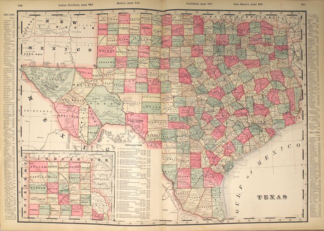 This impressive atlas contains 250 maps according to the table of contents (on around 100 sheets). The maps of U.S. states feature an unusual hybrid coloring where borders are shown in printed color and counties are shown in full hand-coloring. Cartographically, the U.S. maps emphasize the railroad network, with each state map containing a key identifying the various railroads. Each of the tipped in maps has a corresponding index describing the railroads, counties and towns. Many of the states are depicted on three double-page maps including California, Illinois, Kentucky, Nevada, New York, North Carolina, Ohio, Oregon, Pennsylvania, South Carolina, Tennessee, Virginia, Washington and West Virginia. In addition to the maps of states, the atlas contains numerous maps of international regions and 54 city plans, all enhanced with printed color. As with most of Cram's atlases, this example is not short on information, including 501 pp. of maps and related text. Hardbound in maroon cloth with title on front cover.