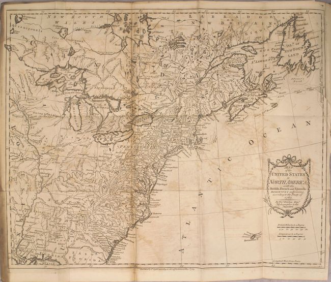 A. Map of the United States in North America: with the British, French and Spanish Dominions Adjoining, According to the Treaty of 1783 (19.9 x 16"). This is one of the earliest English-produced maps to officially acknowledge the United States. It depicts the new nation with its western border on the Mississippi River. The states of Georgia, South Carolina, North Carolina, and Virginia stretch from the Atlantic to the Mississippi. The map is filled with information on early settlements, forts, Indian villages and fishing banks. The title is enclosed in a simple cartouche, with the island of Bermuda below. The map is dated May 1st, 1783. Reference: McCorkle #783-11.