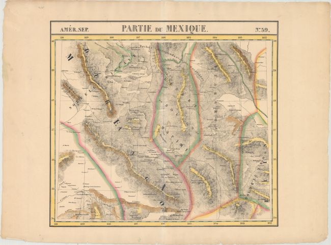 This sheet depicts much of northern Mexico from Monterrey west to Culiacan and north to Chihuahua and the Rio Grande River. The map is delineated by state and shows excellent detail of the topography, river systems, and network of roads and trails. Numerous mines are also located by tiny pickaxes.