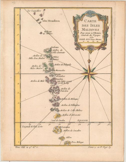 This lot includes two maps depicting islands in the Indian Ocean and East Indies. The first is an attractive map of the island chain southwest of Sri Lanka. It is decorated with rhumb lines, a large compass rose, and a fancy cartouche. The second delicately engraved map represents the western coast of Irian Jaya and the Maluku Islands, the famous Spice Islands that were the cornerstone of the Dutch trading empire in the East Indies. The map locates the settlements and forts on each island.