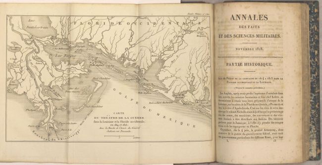 A. Carte du Theatre de la Guerre dans la Louisiane et la Floride Occidentale, en 1814 et 1815; avec la Marche de l'Armee du General Jackson sur Pensacola (10.6 x 6.5"). This map extends from the mouth of the Mississippi River to Pensacola, Florida and illustrates the theater of war along the Gulf Coast during the War of 1812. The map shows the locations and movements of the British ships, as well as General Andrew Jackson's army.