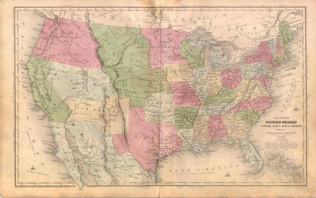 This is a complete example of Olneys' atlas with 25 maps with several related to the United States as well as maps of the world and continents. The double hemisphere world map includes quaint little vignettes throughout, such as Indians and buffalo in North America, lions and elephants in Africa, a pagoda in China and a kangaroo in Australia. The map of the United States shows New Mexico territory with a pre-Gadsden purchase border, suggesting that this atlas is circa 1850 then the 1844 date on the maps. The map of Texas shows county development confined to the east with a large Staked Plain occupying the west. Maps are printed one side only and the printed paper covers double as the title page and list of maps. Published by Pratt, Woodford & Co., New York.