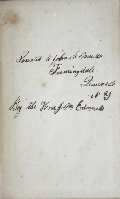 This scarce annual report contains 16 folding maps, including 2 of the United States (identical, but one is colored) and 14 hand-colored state survey maps. This example is unusual, however, as text on page 44 indicates that "The diagrams accompanying the annual report of the surveyors general are omitted, and the connected map of the public land States and Territories, brought up to current date therefrom, is bound with this report in lieu of them." It is likely that this was a presentation copy with all of the maps bound in as there is a dedication on the front free end paper from GLO Commissioner Edmunds.