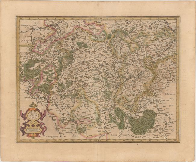 This is a very early map of Luxembourg filled with detail of the rivers, forests, cities and villages. It extends into western Germany to take in the region surrounding Trier. French text on verso.