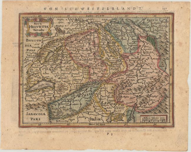 Appealing small map of the mountainous region decorated with a strapwork title cartouche. German text on verso.