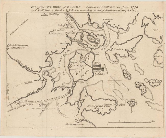 This map is based on an original drawing made in June 1775, and is one of the earliest obtainable maps related to the American Revolutionary War. The original drawing was likely made just prior to the Battle of Bunker Hill, and made its way to England before being published in engraved form in John Almon's The Remembrancer in August 1775.
