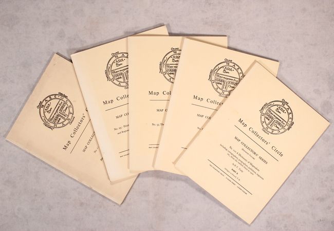 This lot includes the entirety of the splendid run of the Map Collectors' Circle, from volume #1 (1963) to volume #110 (1975). Map Collectors' Circle contains what is still the broadest reaching series of cartographic bibliographies. The series was initiated, edited, and published by the most highly regarded map expert of the 20th Century, Mr. Ronald V. Tooley. Contributors include scholars, dealers, and collectors focusing on a wide range of topics. Collectively, they cover probably the finest compendium of maps and their makers. An indispensable reference work for collectors, libraries, schools, and dealers. Original cream paper wrappers. Also included with this lot is IMCoS 1980-2000 - A History, an overview of the International Map Collectors' Society compiled by Susan Gole.