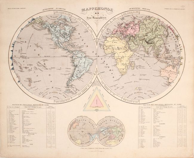This attractive school atlas contains a total of 22 maps on 20 sheets including celestial (2), world (1), continents (6), and regional maps of Europe (13 on 11 sheets). The map of North America shows a pre-Gadsden purchase configuration with no state/terrritorial borders and only basic topographical detail. Includes an inset map of the Aleutian Islands and comparative view of mountains at bottom. The map of Asia prominently depicts the Great Wall of China and the rugged topography in the region around Tibet. Two distinctive charts show the solar system and the composition of the earth. Hardbound in quarter brown cloth over marbled boards with paper title label on the front cover.