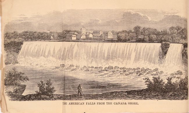 A. Map of Niagara Falls, and Guide Table... [bound in] Burke's Descriptive Guide or Visitor's Companion to Niagara Falls for 1854, by Andrew Burke, published 1854 (6.3 x 9.4"). This early Niagara Falls guidebook includes a frontispiece map (6.2 x 9.5") depicting the Falls, Iris Island, and the village of Niagara Falls with a number of references for the reader surrounding the map image. The 108 page guide also includes three fold-out views of the Falls and vicinity, and is noteworthy for its final chapter “The White Canoes. An Indian Legend." This is a very early literary reference to the "Maid in the Mist" story which quickly became a key part of Niagara Falls' marketing efforts and survives to this day. All the Burke guides are rare as they were self-published by the author and only from 1850-57. 16mo, pictorial wrappers. Condition: The map has a few spots of foxing and a 1.5" binding tear at right confined to the text bordering the map. Folding plates are lightly toned and text has an occasional spot of foxing. Wrappers are lightly soiled. (B+)
